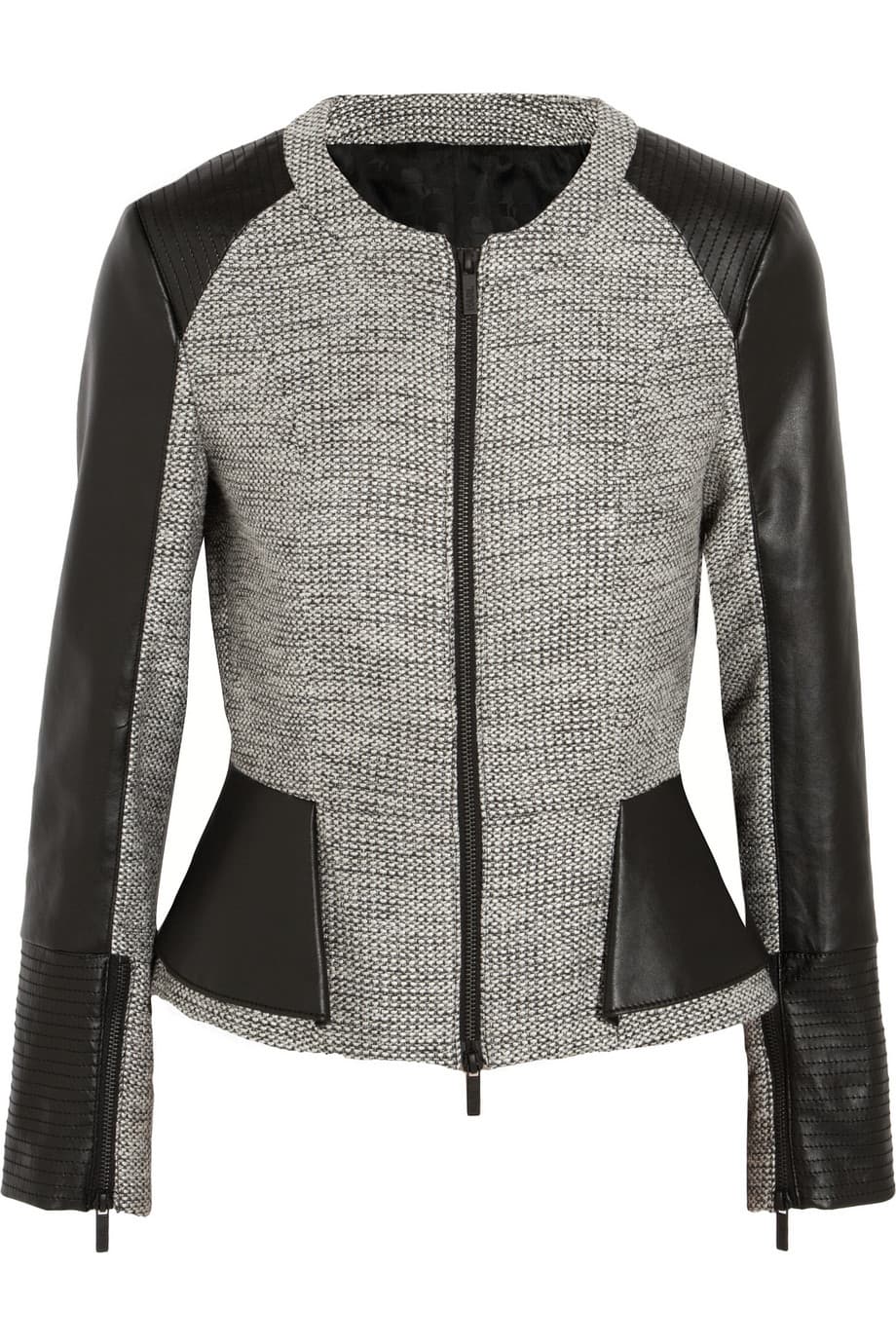 Si quieres un look original y moderno, una chaqueta combinada como esta gris con cuero de Karl Lagerfeld es súper moderna y atractiva.