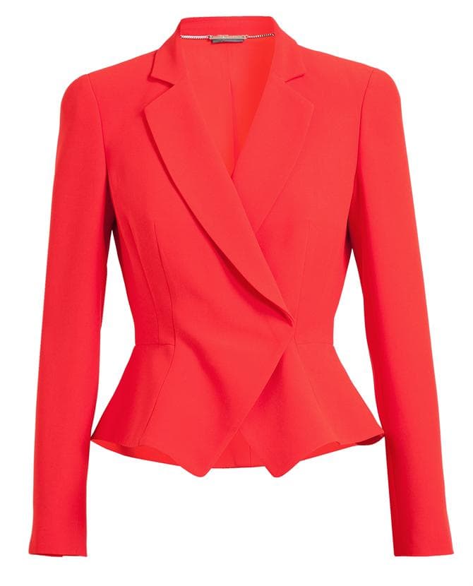 Si quieres darle vida y alegría a tu look una chaqueta colorida como esta de Alexander McQueen es una excelente opción. Puedes combinarla con una falda lápiz con estampado tropical y un crop top blanco, o unos skinny jeans con una blusa de encaje blanco. Tendrás un look estupendo garantizado.