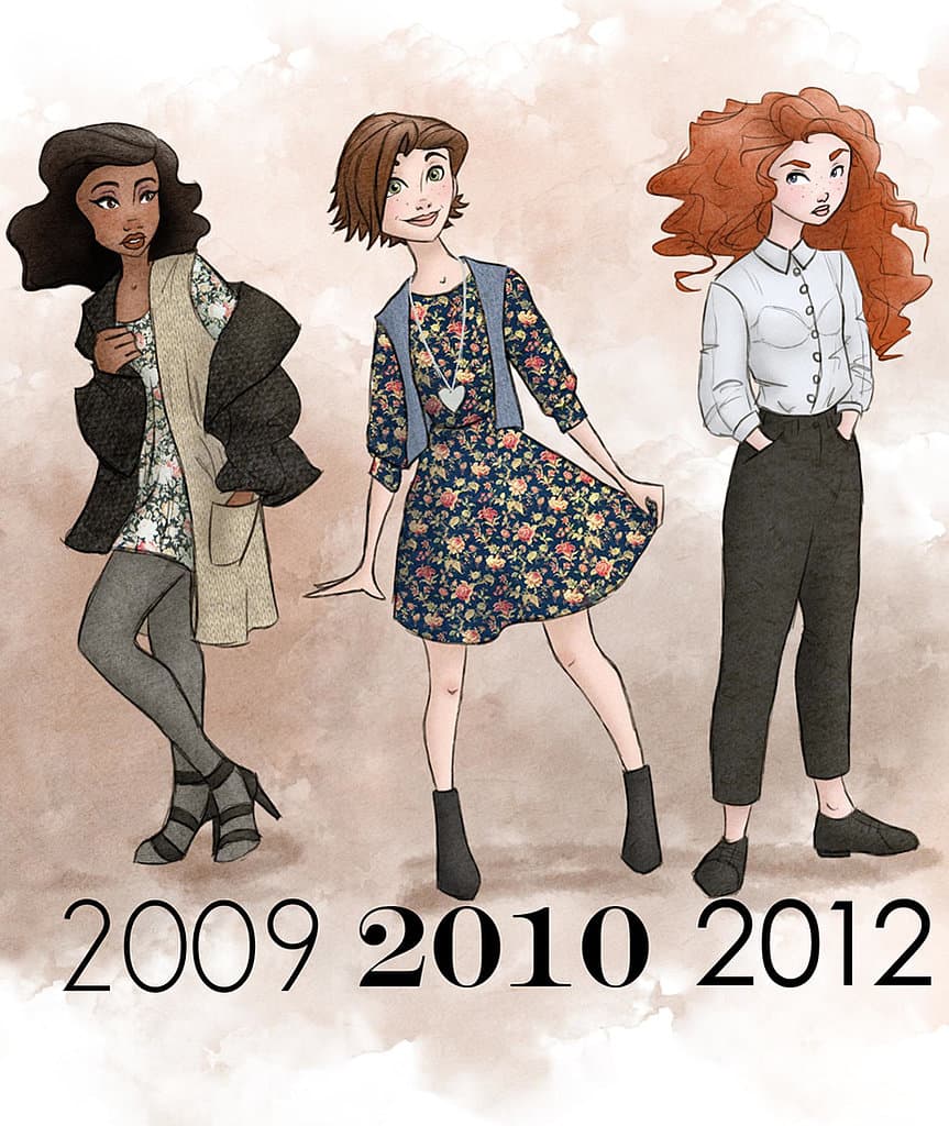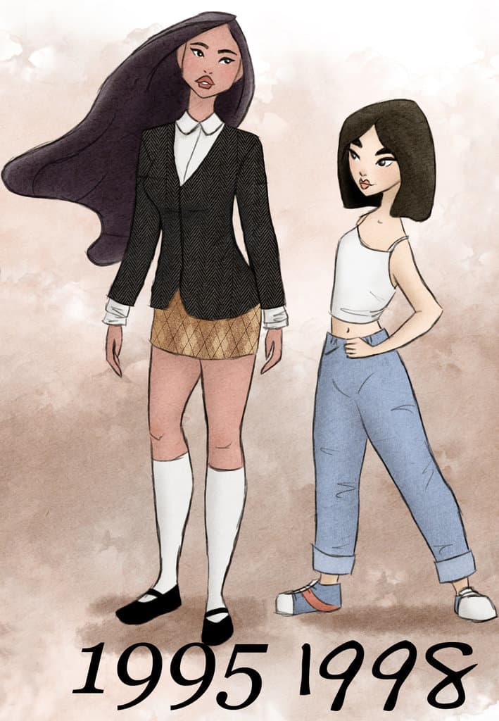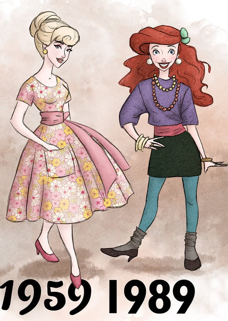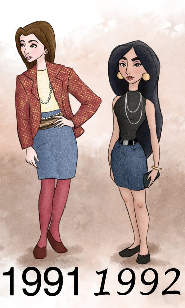 Es divertido ver cómo era la moda del momento en los años en los que se estrenó cada una de estas reconocidas películas animadas.