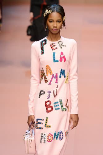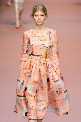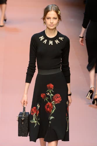 En este caso, con la extraordinaria idea de atraer a las mujeres y madres de todo el mundo con una pasarela llena de niños, vestidos bordados inspirados en dibujos de sus sobrinos, y hasta una modelo súper embarazada. Sí, este conjunto se vio en la runway anticipando la colección de Dolce & Gabbana del Winter 2016.