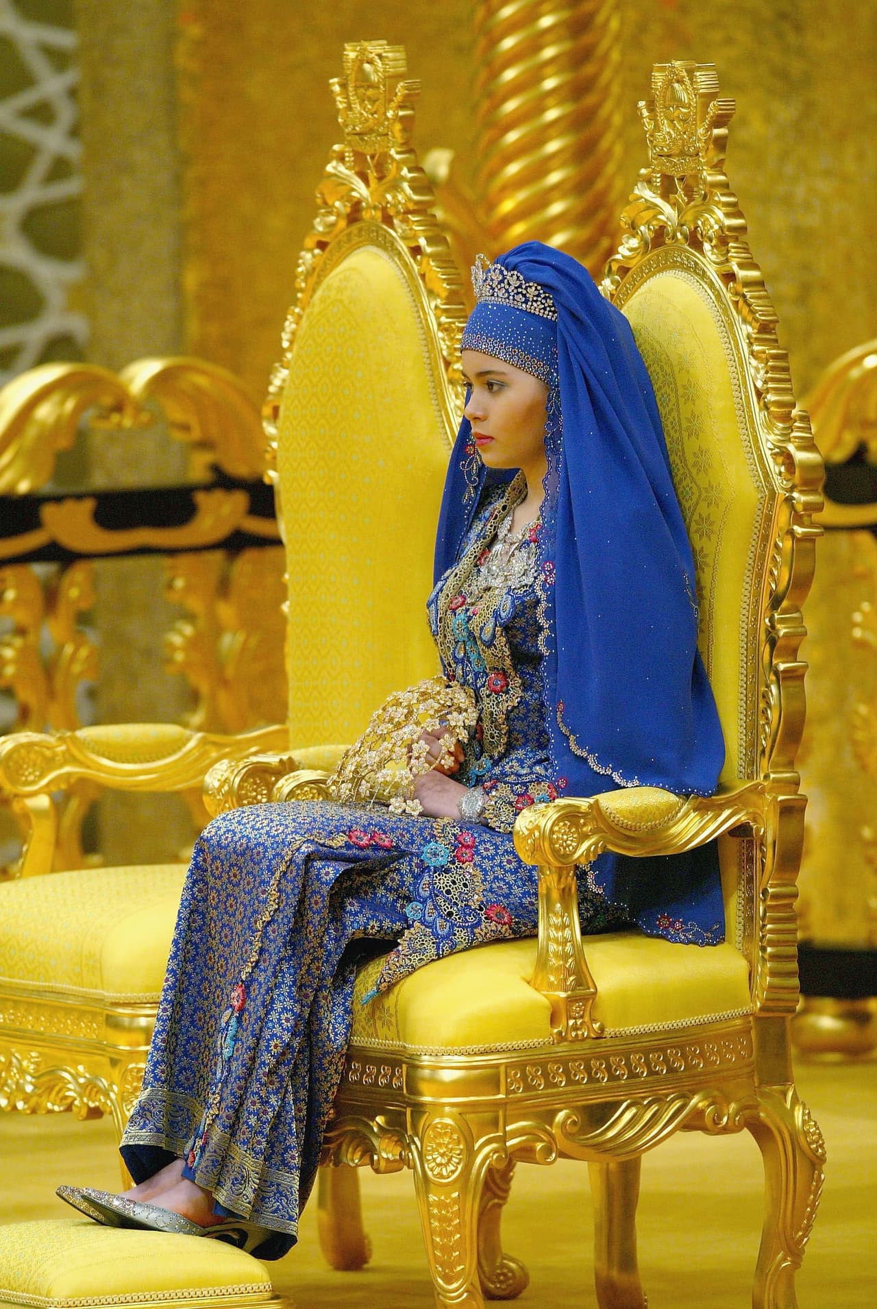 Este tipo de celebraciones conlleva un ritual extra para el "ascenso" al trono que dura dos días. Aunque Sarah nunca podrá obtener el título de "reina", el protocolo islam la honra como "la madre de los futuros herederos". La vestimenta para la ceremonia se comupso de un hijab amplio, en colores vivos y múltiples joyas.