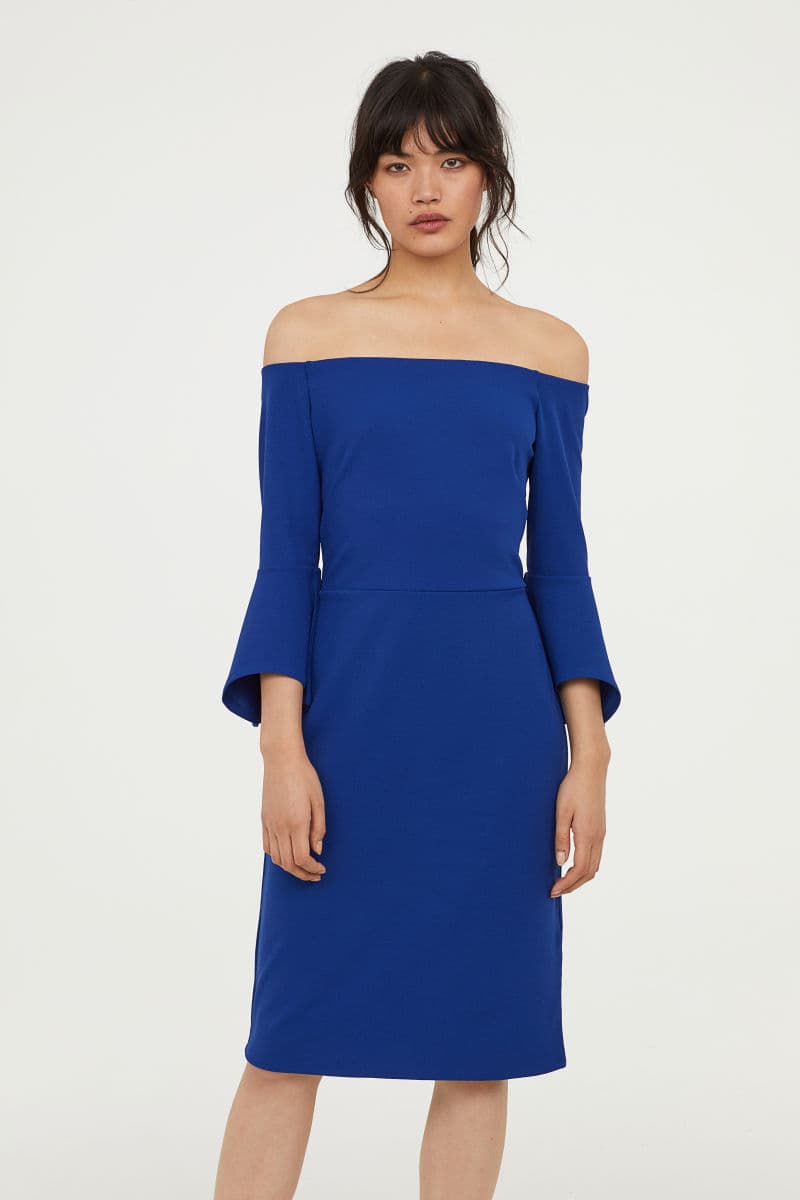 Los hombros son una parte muy sexy del cuerpo femenino, así que muestra los tuyos con orgullo y sensualidad. Este vestido azul es perfecto para hacerlo.