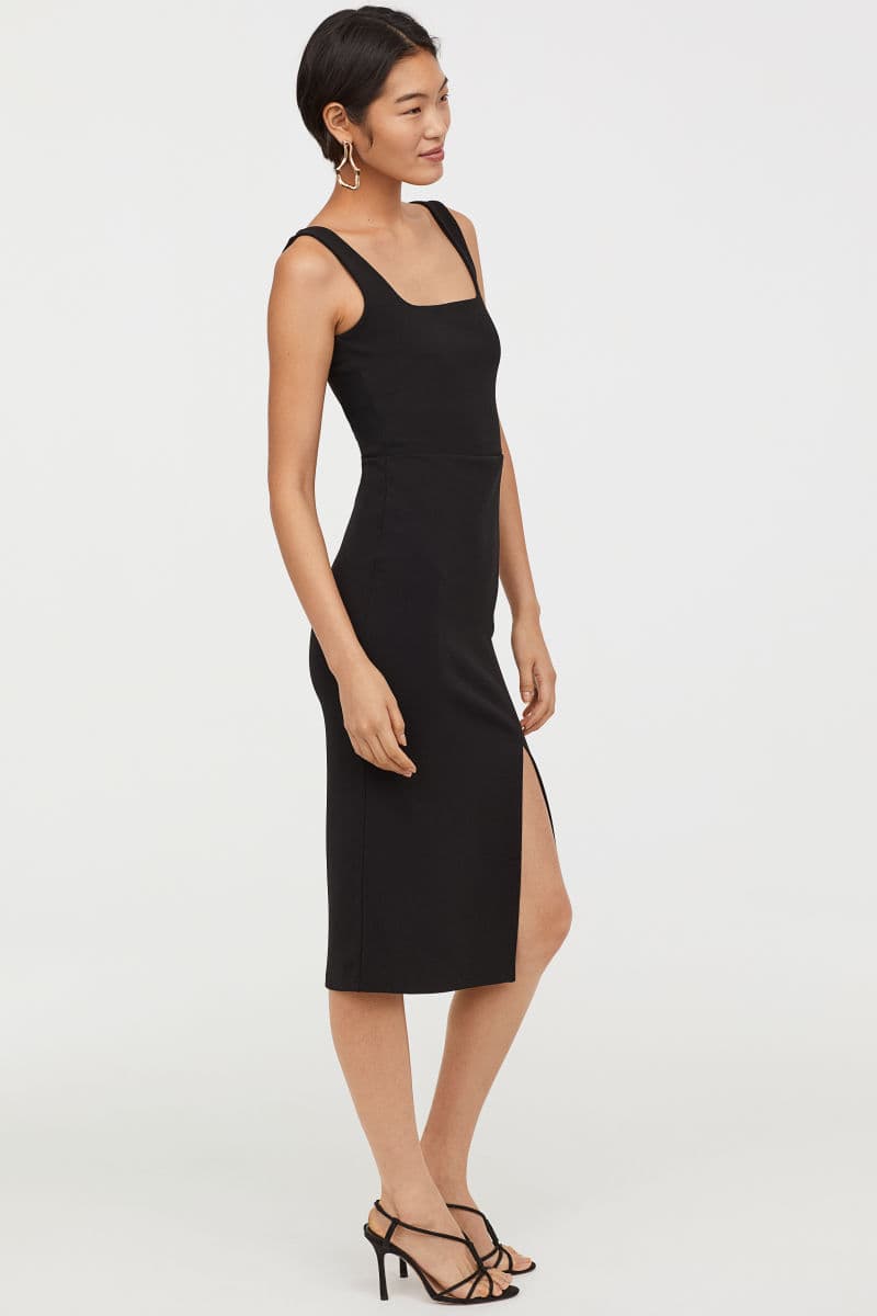 Para mujeres más clásicas, tenemos este vestido entubado en color negro que puede servir para cualquier ocasión. Elige los accesorios correctos ¡y listo!