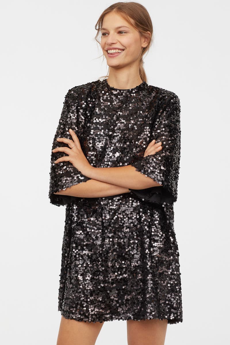 Los vestidos amplios en lentejuela son un must esta temporada. Uno como éste de H&M te permitirá verte divertida y a la vez sentirte cómoda.