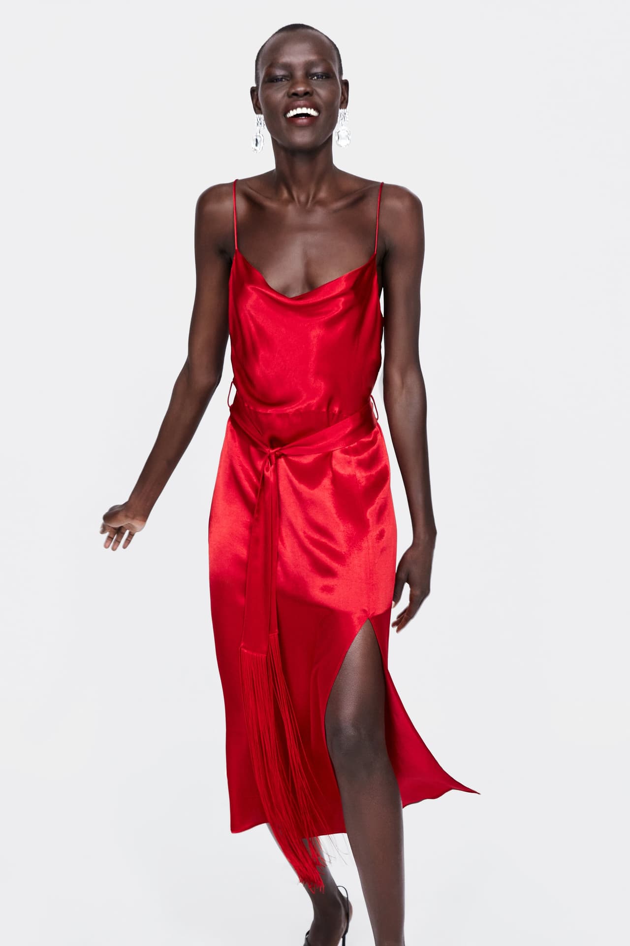 El color rojo es otro que te permitirá causar el máximo impacto donde quiera que vayas. Los flecos de este diseño, además, te darán mucho movimiento. También es de Zara.