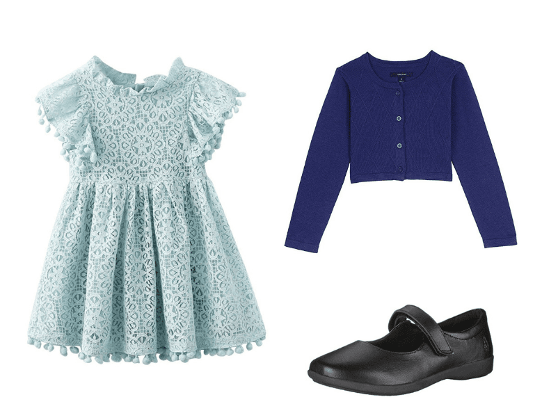 Porque la duquesa no va a ningún lado sin sus bellos hijos, esta es una buena idea para un disfraz grupal. Para el atuendo de la princesa Charlotte, elige un vestido estampado celeste y un saquito azul. Termínalo con unos zapatitos negros (parte del uniforme escolar de cualquier niña) con medias blancas.
