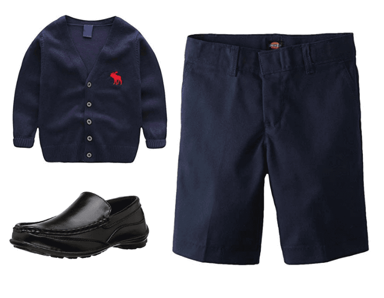 Si vas a vestir a tu príncipe George, hazlo con un suéter y unos shorts (nunca un pantalón: es tradición que los niños pequeños de la realeza estén vestidos de short), a juego en color azul oscuro. En los pies lleva unos mocasines negros con medias también azul oscuro.