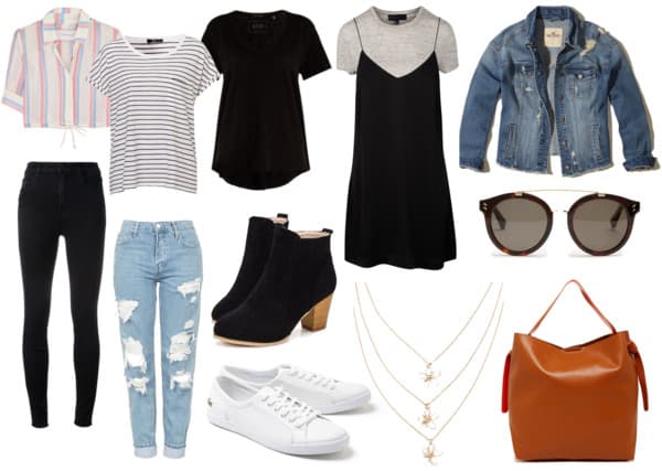 - Ya tienes tus looks, pero obviamente hacen falta algunos básicos de cualquier maleta de viaje: