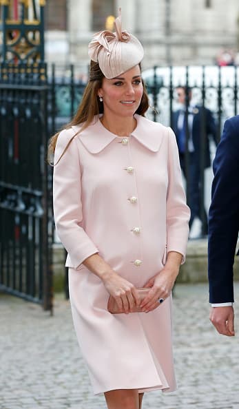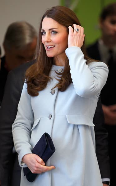 Last, but not least, during pregnancy it is important to incorporate lighter tones into our wardrobe. Princess Kate adds a pop of color and complements the look with her sapphire ring and diamond earrings. Something to keep in mind if you're expecting, is that coat-dresses are great for pregnant women because they aren’t tight, fit beautifully and could be worn throughout most of the pregnancy.