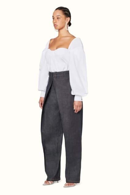 ¿Qué te parece esta blusa con mangas abombadas y escote tipo corazón? La vibra de Rihanna es fuerte en este diseño.