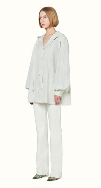 En el departamento de blusas también encontrarás características originales. Como en esta, cuyo borde inferior termina en punta y puedes usar abotonada por completo o sólo a la mitad.
