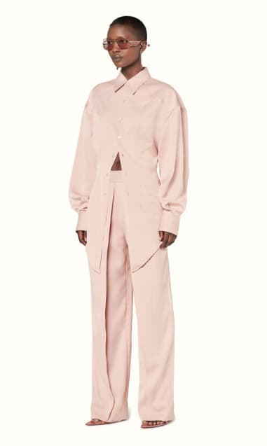 La propuesta de Rihanna también cuenta con piezas que son perfectas para ir a trabajar, en especial si tu puesto requiere de ropa formal. Una de ellas es este saco disponible en los colores camello, blanco y rosa. El detalle fuera de lo ordinario es que viene con una cangurera que puedes usar como cinturón.