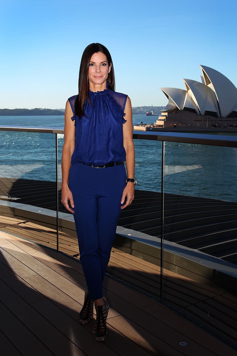 En 2015, Sandra destacó en el festival de cine de Toronto con un jumpsuit de color rosa sobre el que llevó un fino cinturón del mismo tono para enmarcar su pequeña cintura.
