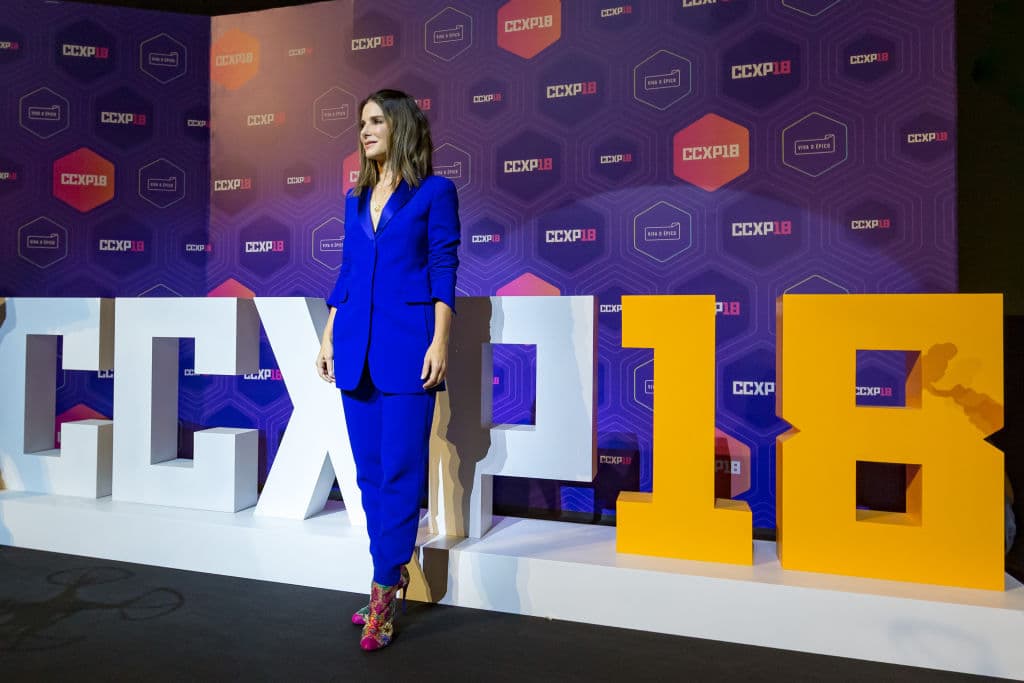 Durante la promoción de Bird Box, la actriz asistió a la Comic Con de Brasil y posó muy chic con un conjunto súper 'girl boss' que combinó con un par de zapatillas estampadas.