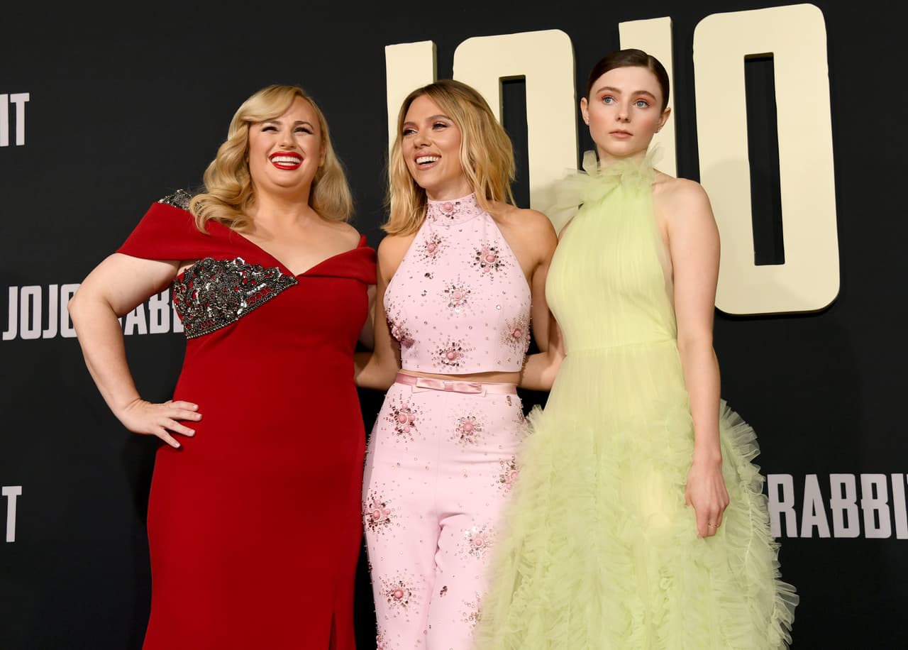 Sin embargo, el outfit estrella entre comodidad, elegancia y brillo es el coordinado que la estrella de Avengers llevó a la alfombra roja de Jojo Rabbit, en Los Ángeles, California.