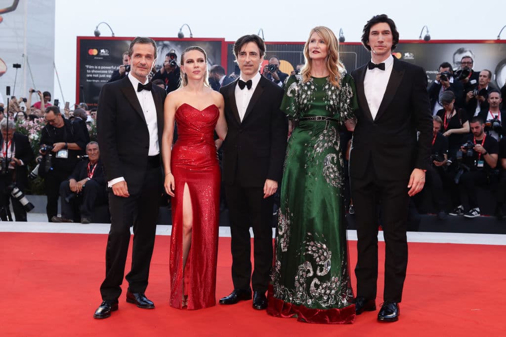 Para la presentación de la película Marriage Story, que protagoniza, la actriz de 34 años escogió un fabuloso e impresionante vestido color rojo, con un escote tipo corazón y una abertura en la pierna a nivel del muslo
