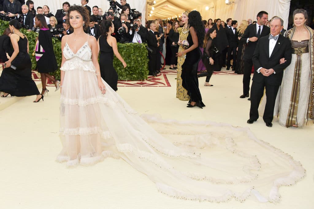La temática para la Met Gala de 2018 fue : Cuerpos celestiales: Moda y la imaginación católica, así que las celebridades tuvieron que llevar un paso más allá su imaginación para poder deslumbrar en el estrafalario evento. Sin embargo, Selena Gomez optó por un atuendo angelical, por supuesto que está inspirado en el catolicismo, pero al contrario de Rihanna, Sel prefirió algo más sutil.