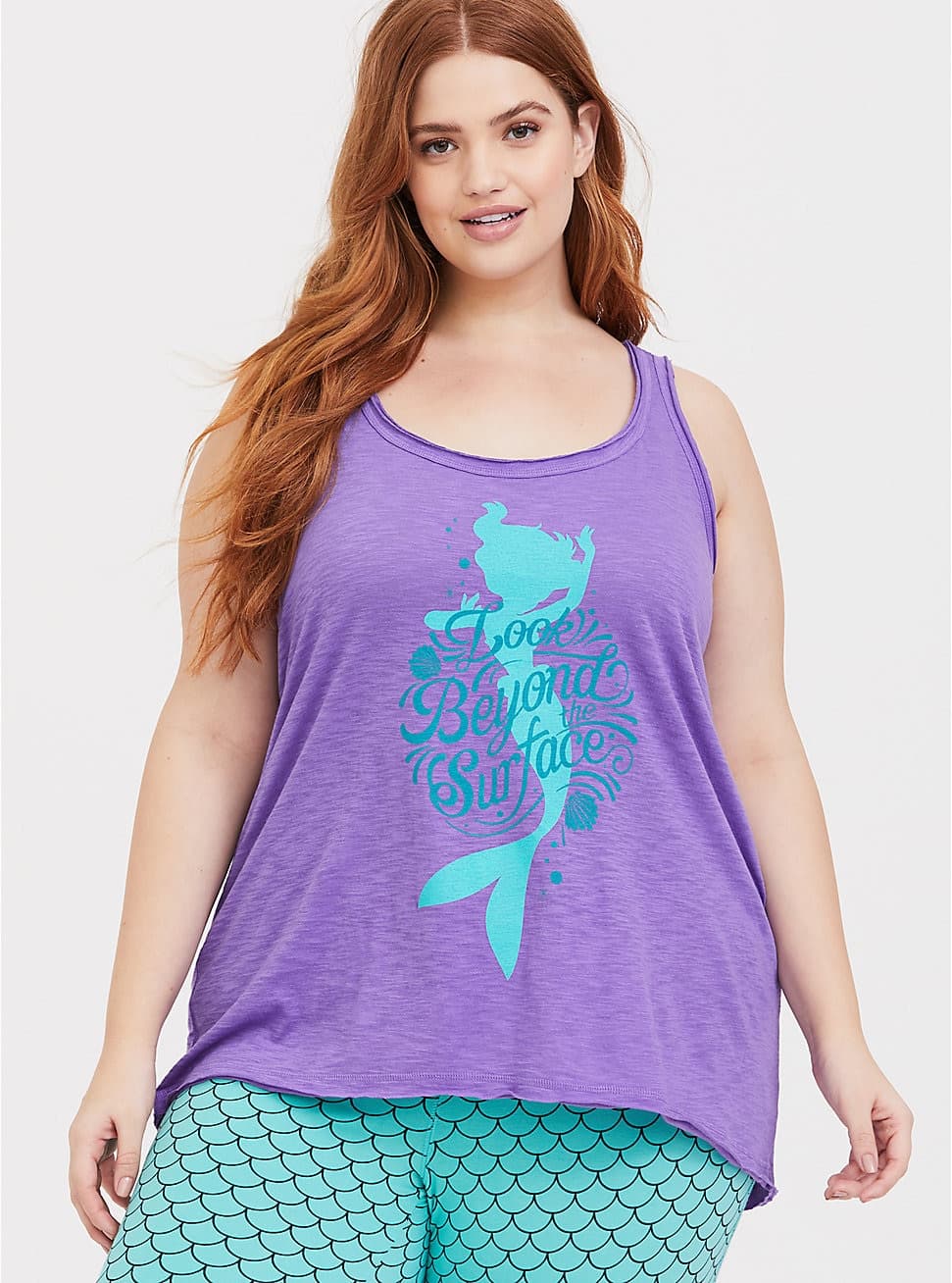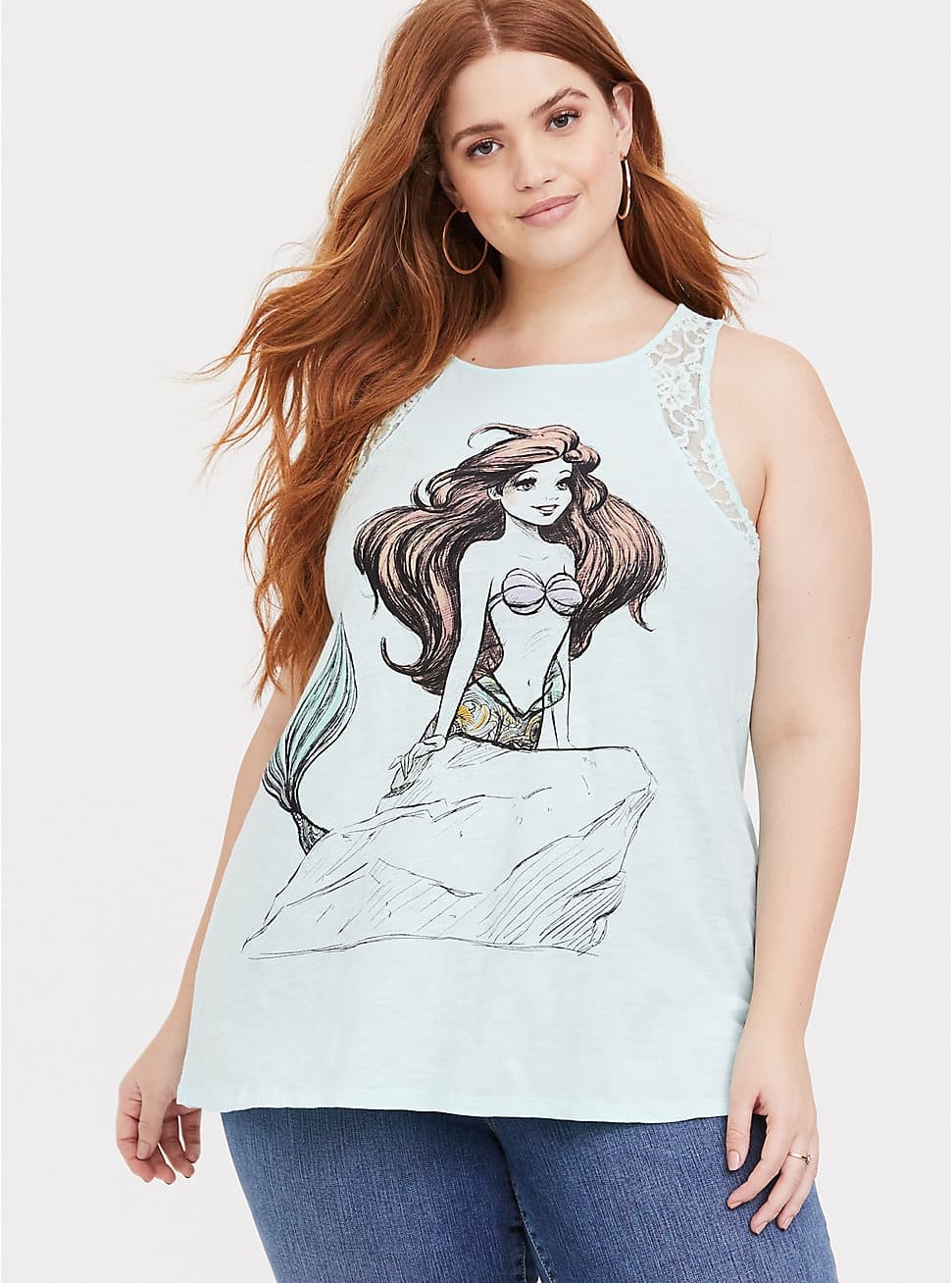 Si lo tuyo no son los vestidos y faldas, Torrid tiene también blusas y tank tops para ti. Cómo este TT con la silueta de Ariel. Esta la conseguirás aquí.