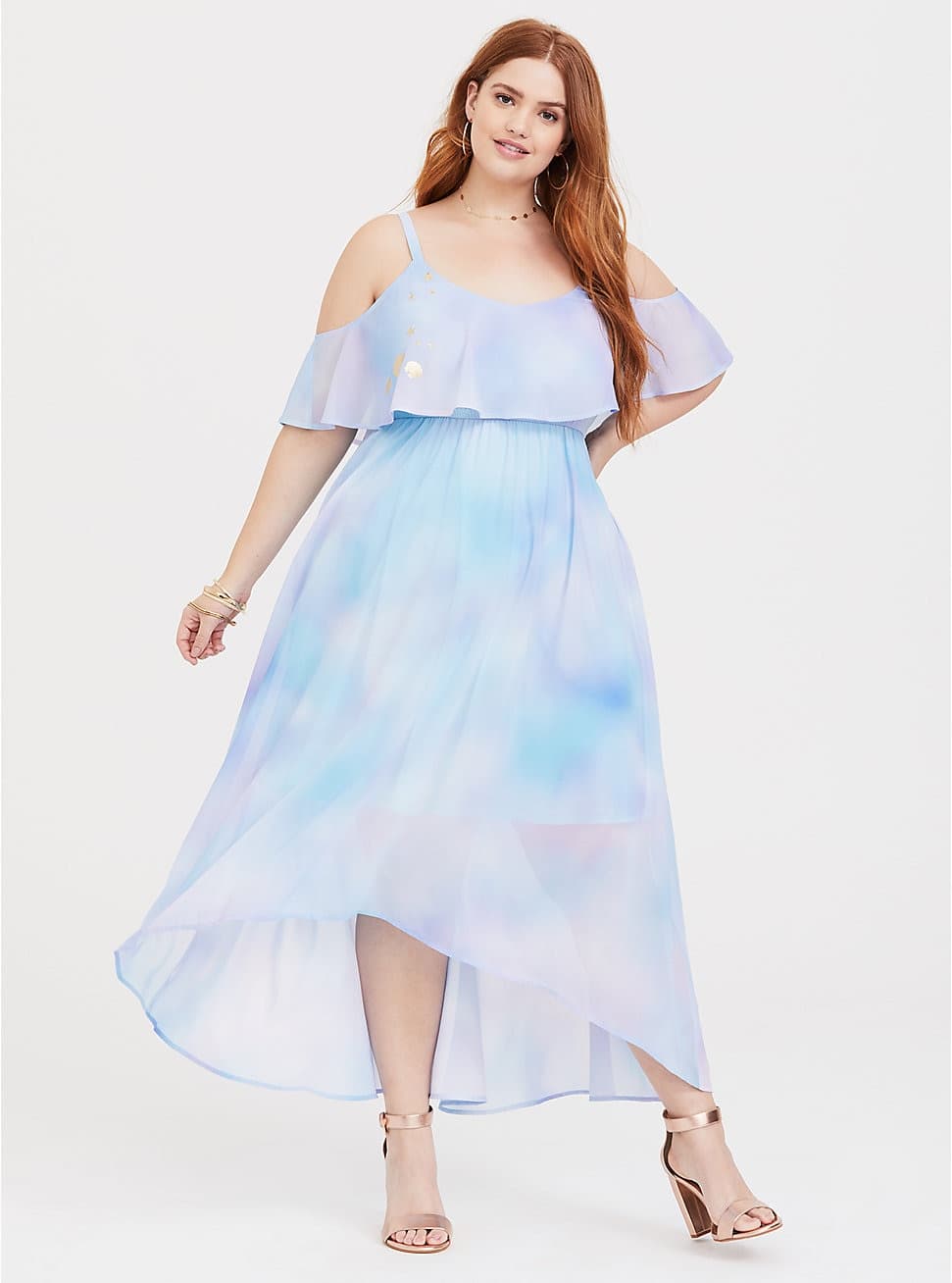 Por ejemplo, este maxivestido con la imagen de Ariel y un corte asimétrico. Si te gustó, aquí lo consigues.
