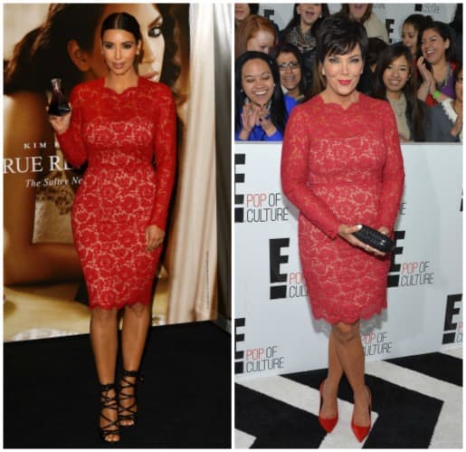 Kris Jenner looks great for being 50+ (we won't reveal the secret)! After having 6 kids, the mogul ― momager has been considered to be another sister as she looks so youthful and glamorous. The Valentino dress worn by Kim Kardashian herself, was later sported by her very own mother who paired the looked with red pointy pumps.