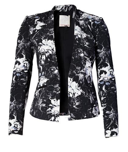 Una excelente combinación es un blazer negro con flores rojas y de algún otro color. Ideal para combinar con una falda lápiz para ir a la oficina o unos pantalones de cuero o una falda para lucir fabulosa en una salida nocturna.