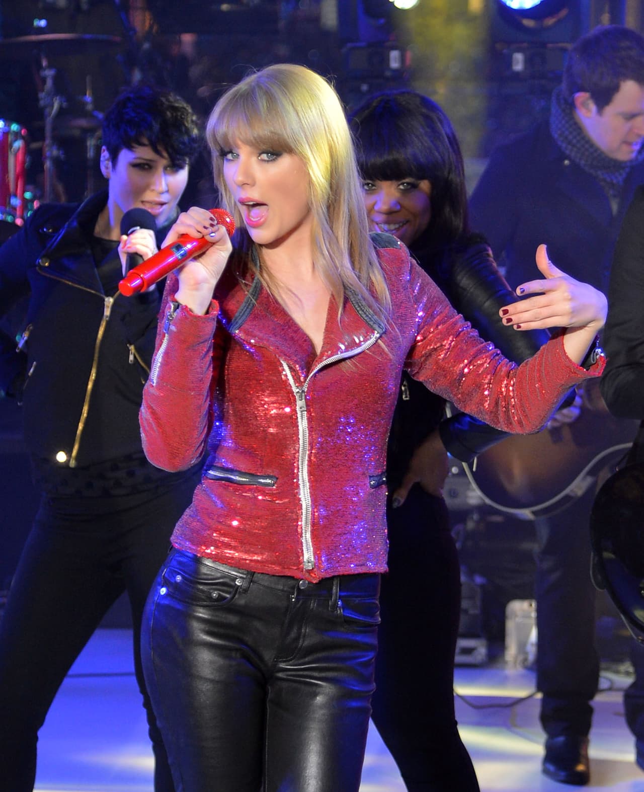Taylor ha decidido lucir un look bastante apagado, con medias negras, una falda estampada, bufanda de lana, y una chaqueta negra muy diferente a las anteriores que les había mencionado. Simplemente nada de cierres metálicos, y un corte muy sencillo. ¿Qué te parece?
