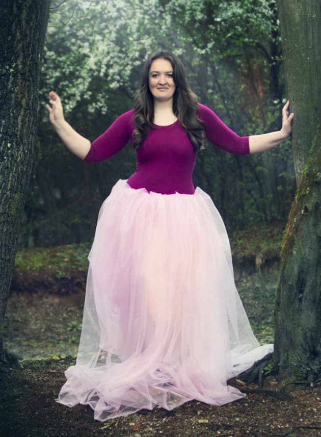 ¿Quién dijo que no puedes llevar un tutú? Esta es la versión adulta para el look de los tutús de las más pequeñas. Solo necesitas un body morado y un pedazo de tul rosado, tornasol o con algún tipo de brillo.