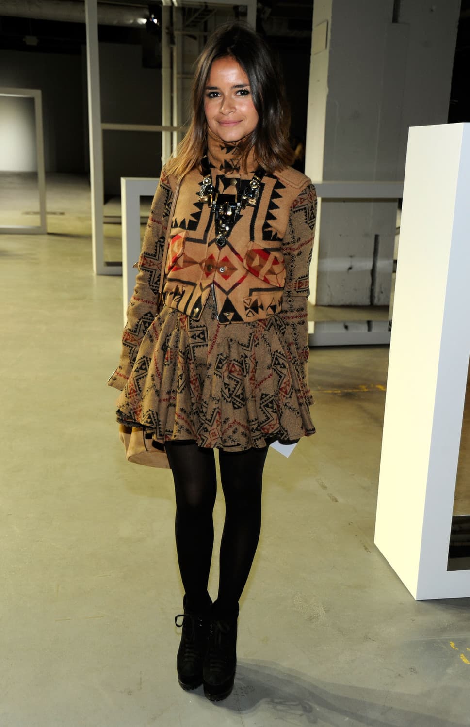 Ella suele tener esa innata inocencia en todos sus looks que en este en concreto echamos en falta. Quizá sea por esa blusa semi tranparente y con esa forma tan poco favorecedora. Sin duda, uno de los peores looks de Miroslava Duma.