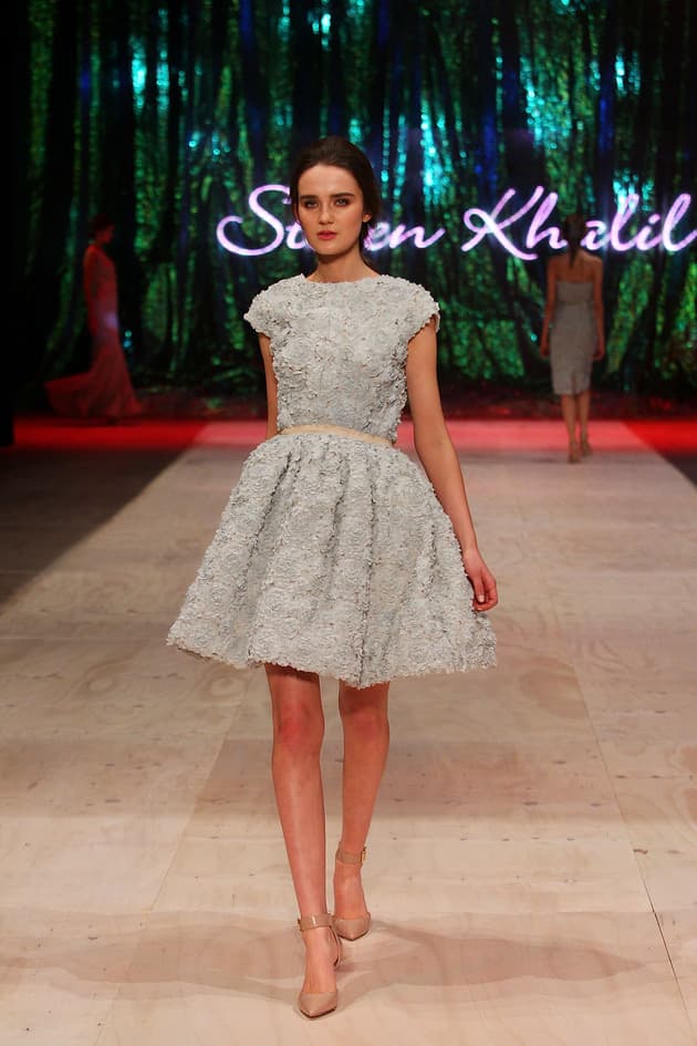 El diseñador Jill Stuart apuesta a un estilo más naif, con un vestido babydoll blanco, con detalles transparentes de encaje con estampado floral. Zac Posen sin embargo, opta por un estilo de vestido más tradicional, y se luce con una falda de vuelo acompañada con una torera formal.