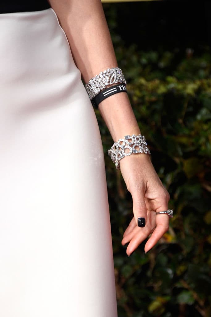 Varias celebridades utilizaron un brazalete en la alfombra roja y durante toda la ceremonia. Este brazalete, estampado con Time's Up x2 puede ser tuyo a un bajo precio (el x2 refiere al segundo año en el que las celebridades luchan por terminar con la agresión sexual en el lugar de trabajo).