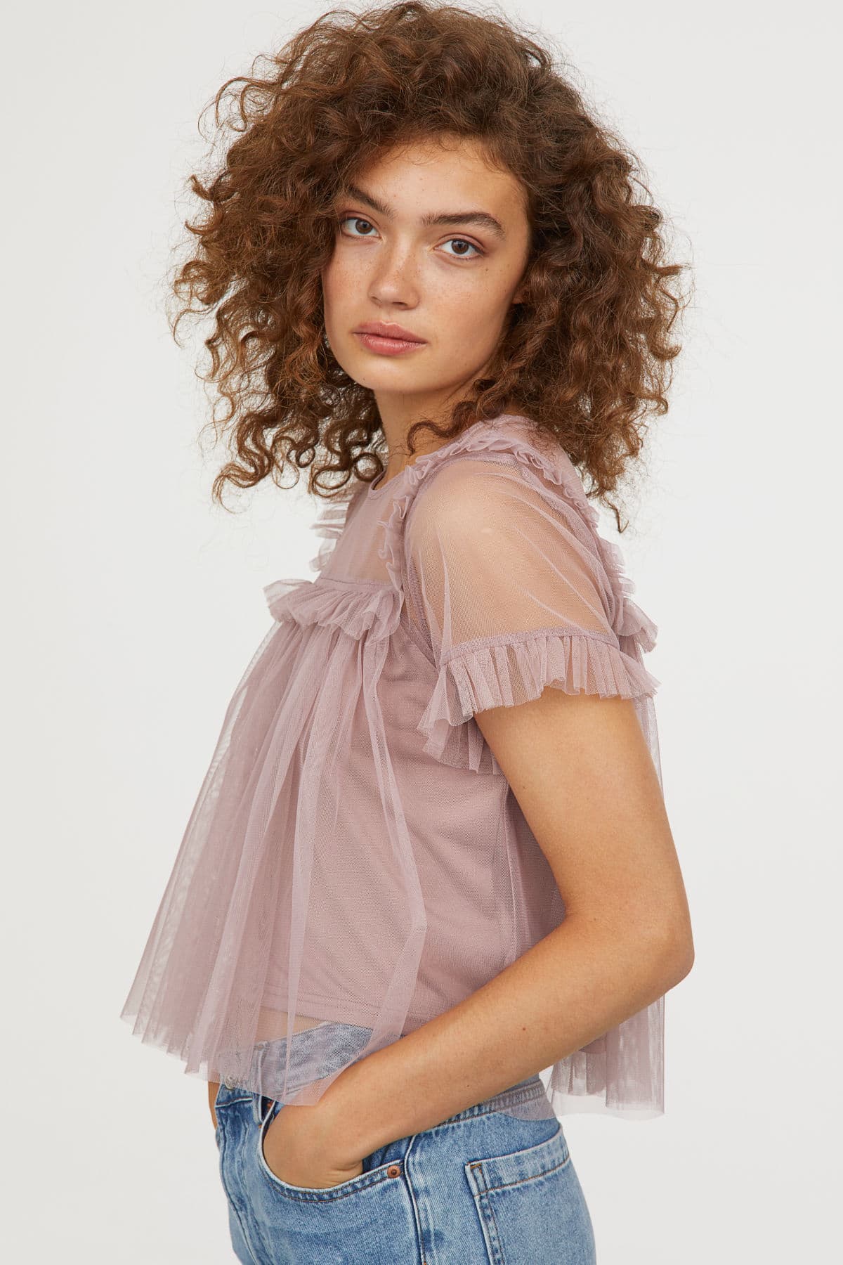 Las transparencias son tendencia, están a todo lo que da. Crea un look nocturno y sensual con una blusa tipo mesh y unos jeans de talle alto.