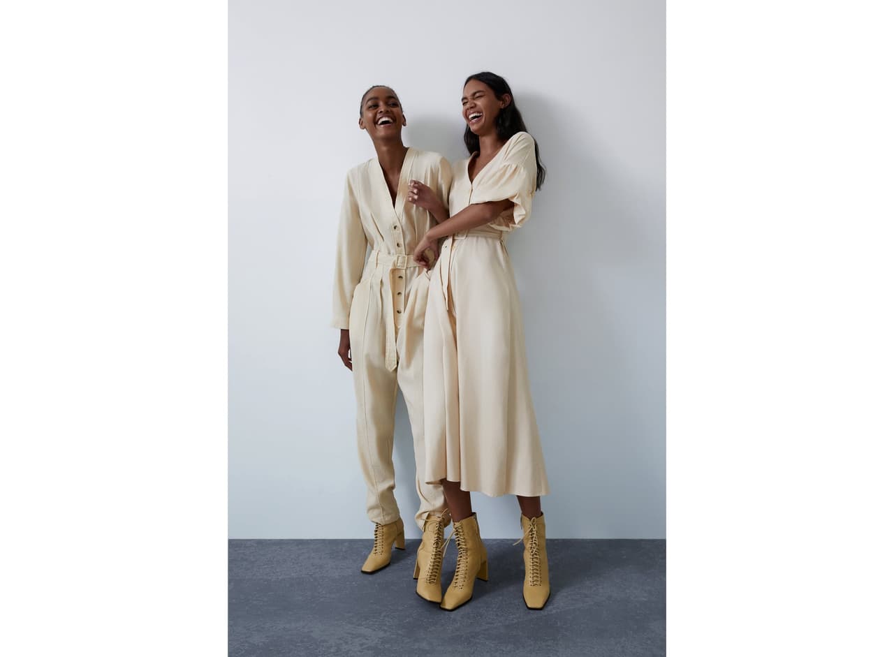 Aunque estamos de acuerdo en que hay excepciones. Por ejemplo, con los jumpsuits de cortes bastante relajados o con una vibra playera, puedes usar sandalias sin tacón, tenis blancos o inclusive un par ugly sneakers.