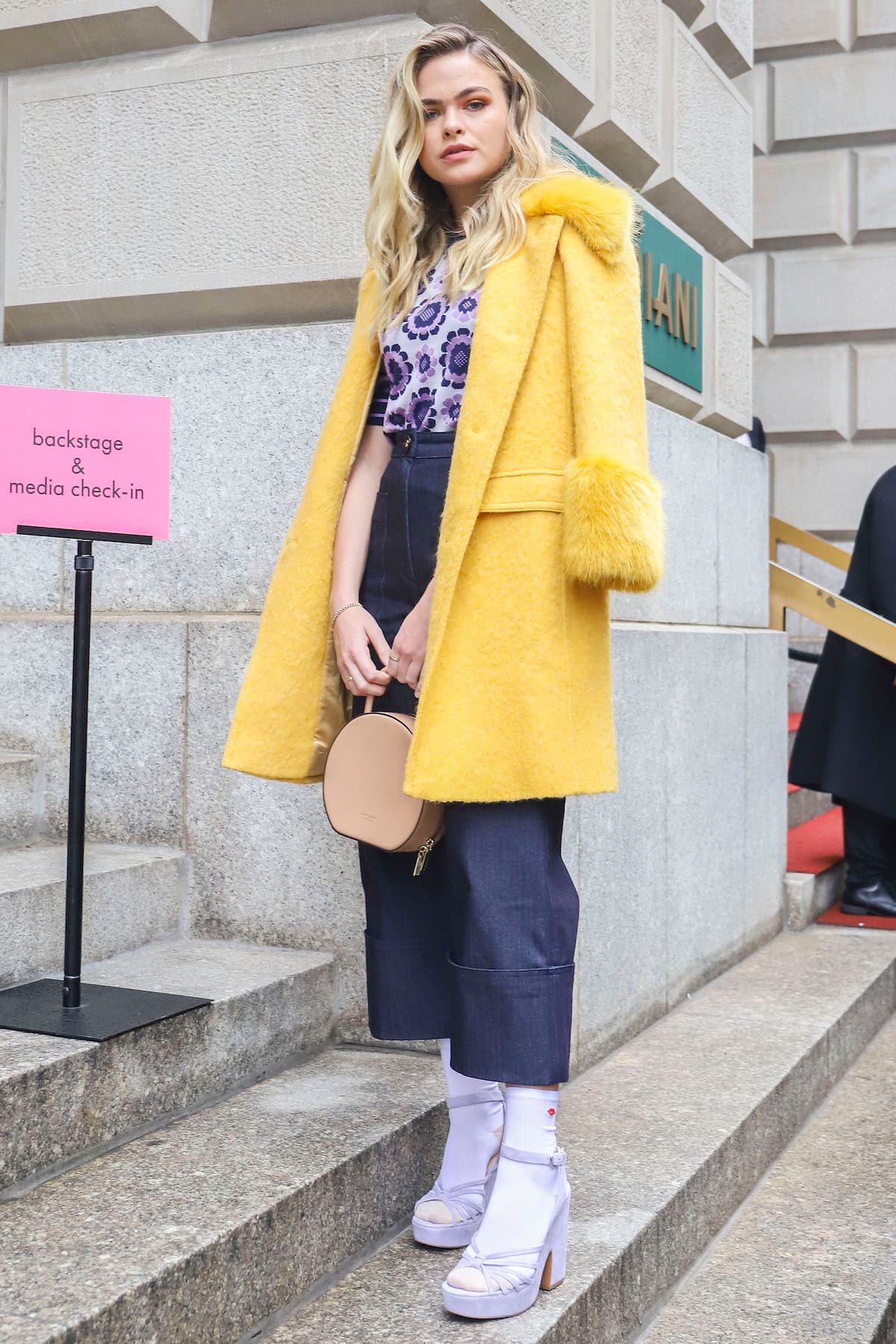 Atrévete a crear un look con estampados de distintas figuras y combínalo con unos zapatos claros, así como lo lució la modelo mexicana Cristina Piccone para el desfile de Anna Sui.