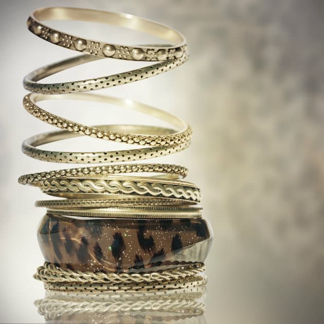 Opta por usar accesorios que puedas combinar con cada atuendo. Decídete por plateados o dorados e incluye una pulsera, un collar llamativo pero versátil, aretes y anillo. Lleva unos pendientes extra que puedas usar en la noche.