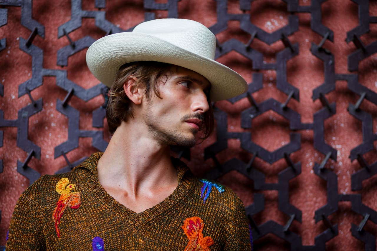 “Referenciando el traje o el tradicional vestido Maya, así como las influencias europeas sobre el vaquero guatemalteco y sus chaquetas, sobre pantalones y camisas, aparecen en esta colección” se lee en el comunicado. Chaquetas tipo blusón y camisas vaqueras bordadas, así como bermudas a la rodilla, chinos y pantalones acampanados, estelarizan la colección que además incluye linos, túnicas y fajas.