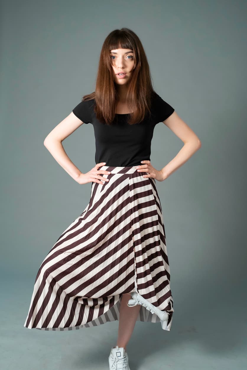 Si es la primera vez que experimentas con un outfit de dos piezas y tenis, utiliza colores que garantizan el éxito, una falda negra nunca falla. El siguiente conjunto hace suspirar.