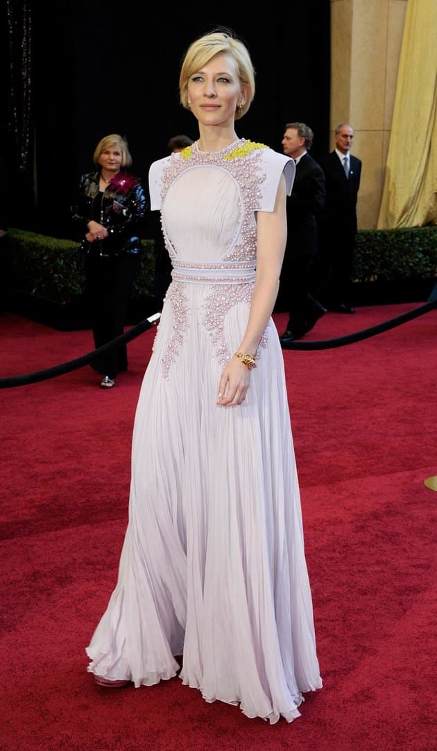 Givenchy: esta colección tiene la particularidad de que está empapada de influencia oriental, japonesa, más específicamente. Tanto así, que algunas modelos utilizan sombreros que emulan aunque exageran, las formas de los protectores que utilizaban los samurais. Lo que llama la atención de esta colección es que las telas tienen una caída asombrosa y son todas de colores claros, agregando en algunos casos un toque de color en piedras o canutillos. Otra curiosidad es que la actriz Cate Blanchett usó uno de los vestidos de la fotografía en la ceremonia de los premios Oscar y lucía realmente espléndida. Esto es para quienes creen que los vestidos alta costura no se usan jamás.