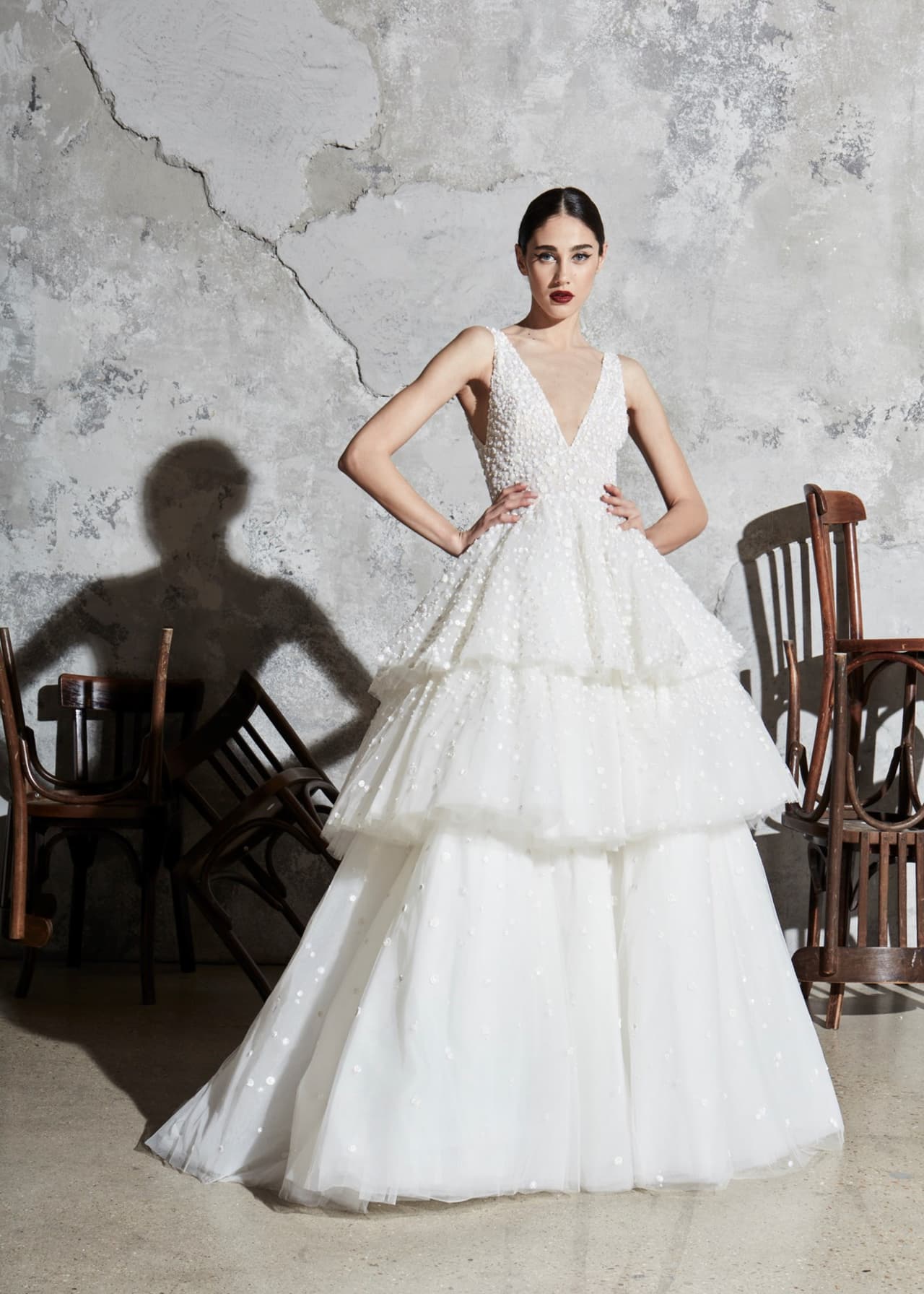 La tendencia del volumen extremo está pensada principalmente para aquellas novias que buscan sentirse como una princesa, con una falda súper amplia.
