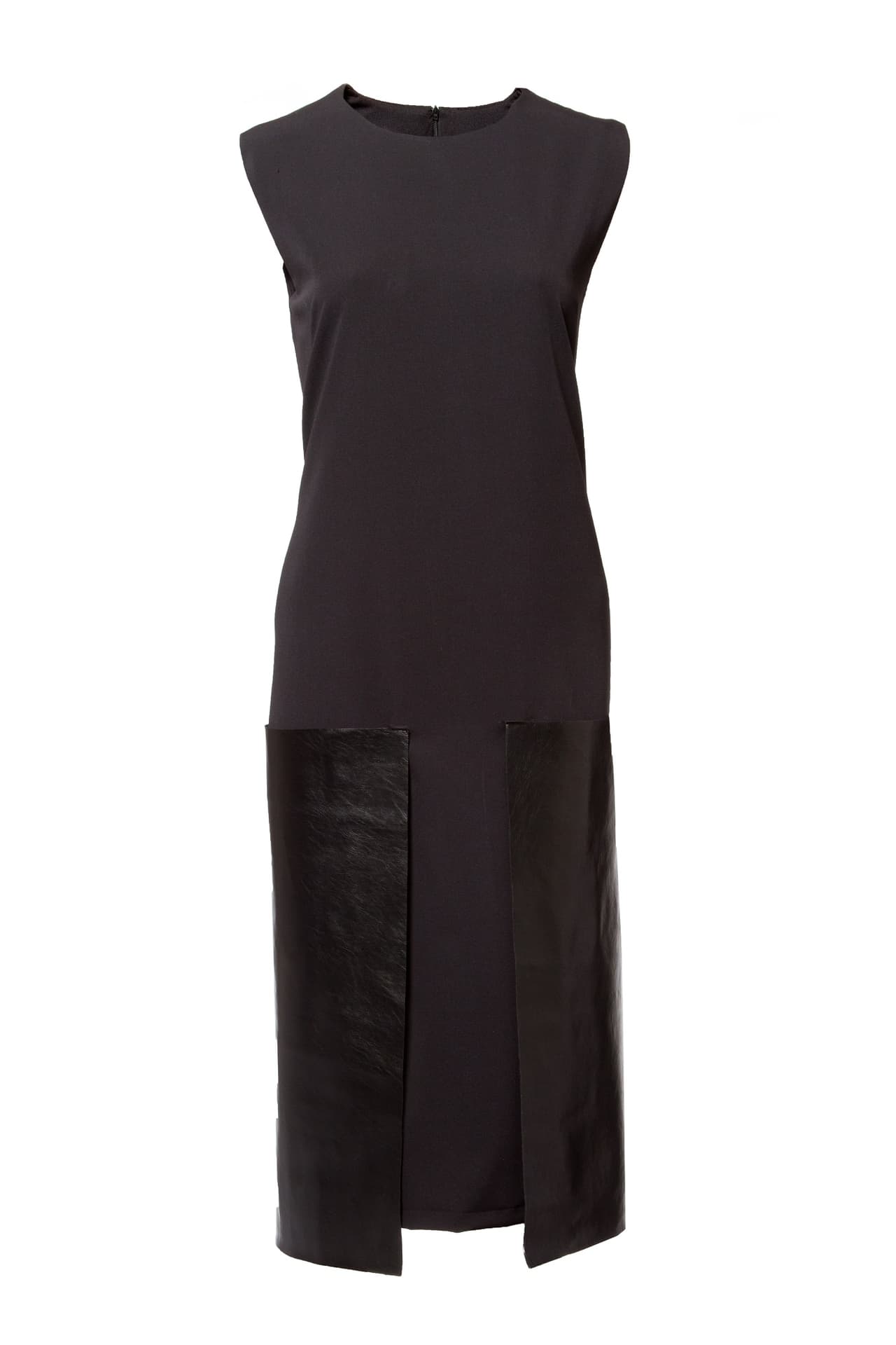 Tener un vestido negro en tu guardarropas es ley pero, a cada mujer, le corresponde un corte diferente. Este vestido no es para todas: tiene un largo especial, es cerrado y rectangular. El juego de la tela con el cuero es un plus en esta prenda: le da modernidad y movimiento.