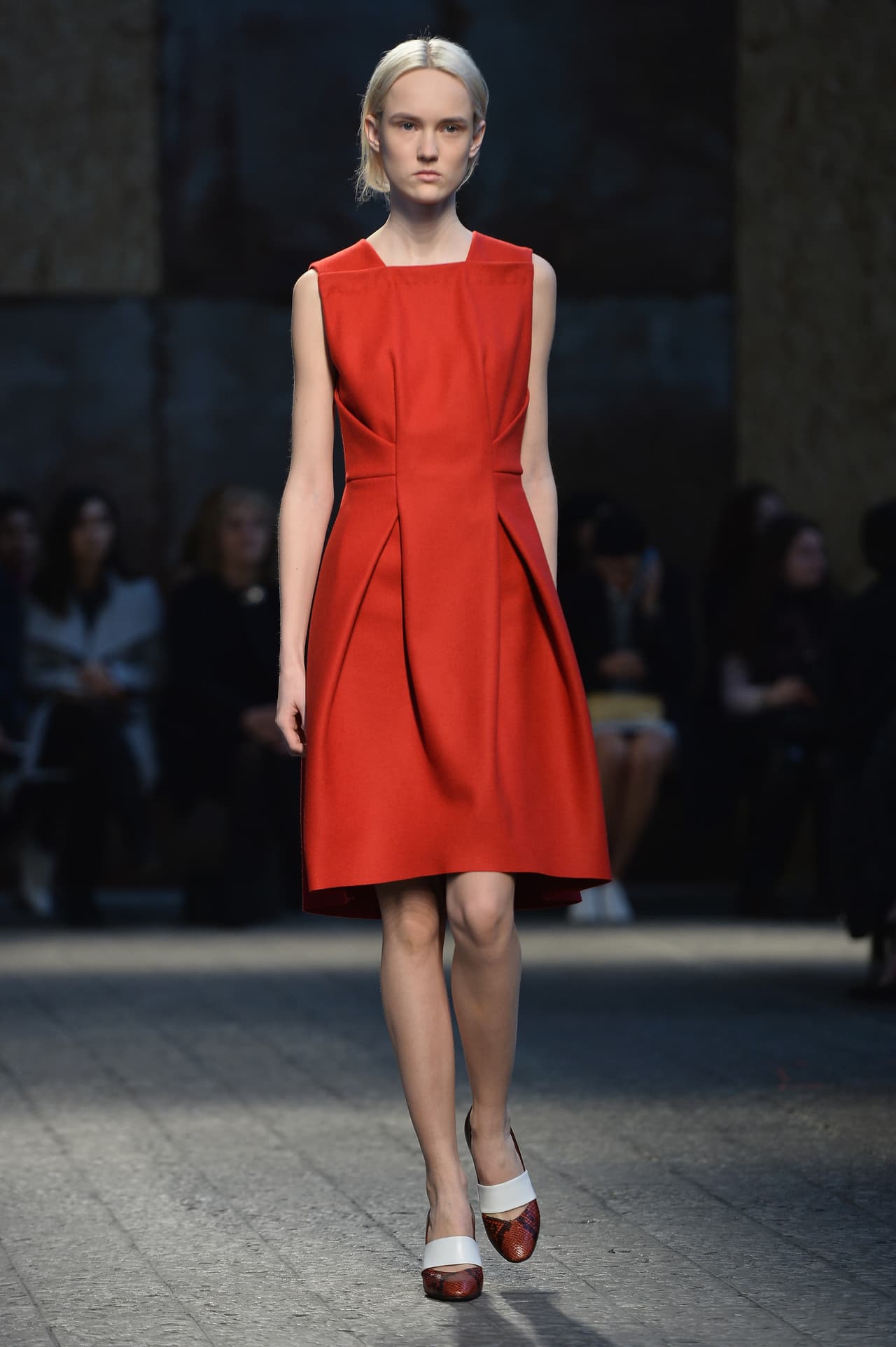 Giambattista Valli diseña un barroco vestido con flores de invierno en tonos fucsia, rojo y cereza. Donna Karan nos ofrece un vestido wrap color vino con mangas xxl. Celine se decanta por un vestido a capas en aguas color cereza, fucsia y rojo.