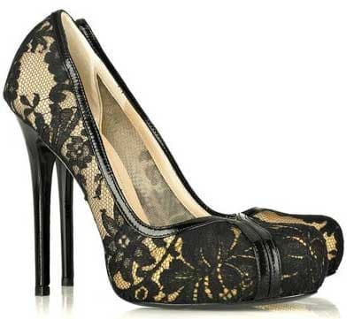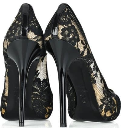 Zapatos de tacón peep toe de encaje. Este diseño sí que está precioso: son clásicos y elegantes como todo zapato negro, pero a la vez originales y delicados porque están hechos de encaje. Al igual que el que vimos anteriormente, se trata de un modelo peep toe y con tacón de aguja. ¿Te imaginas llevándolos a una fiesta?