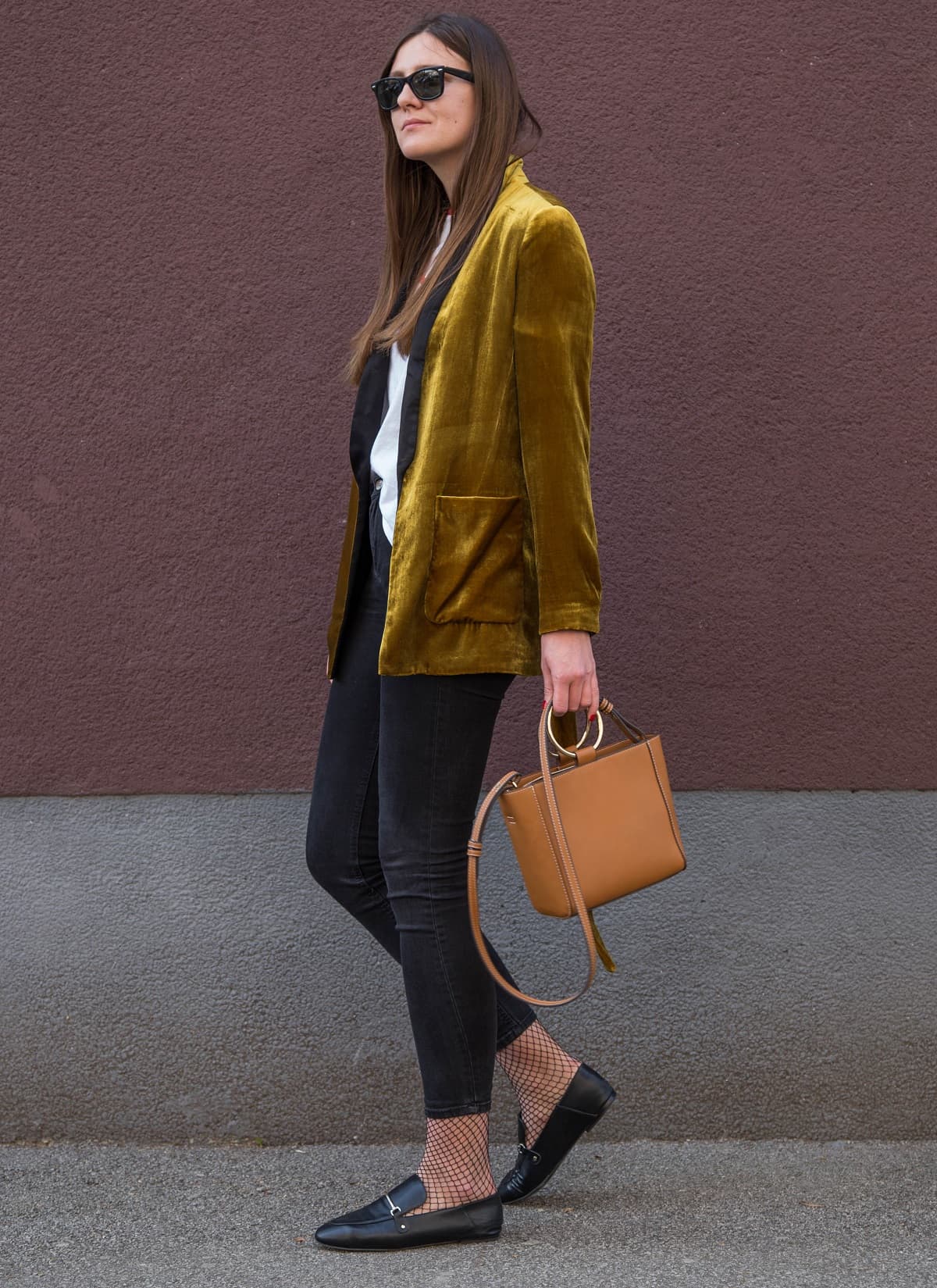 Son tan versátiles que los puedes combinar con pantalones, faldas y vestidos. Apuesta por unos loafers y pantalón en negro, y da un toque de luz con un blazer de otro tono como verde militar o beige.