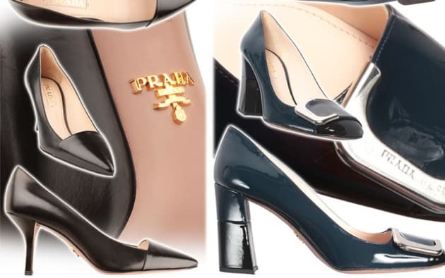 Dentro de lo que es el estilo más clásico Prada ha creado algunas variaciones como lo son las texturas brillosas de charol, los tacones rectos y en aguja, las puntas rectas, las hebillas metálicas, etc.