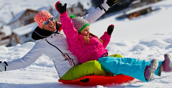 Sledding: Trineo, una de las formas más divertidas de jugar con la nieve, requiere de un trineo (lo encuentras en cualquier tienda de deportes, de juguetes y hasta en amazon.com). Es una actividad para todas las edades, pero los más pequeños deben ir acompañados de adultos. Es recomendable no usar trineos hechos en casa o llantas, porque con ellos es más fácil perder el control al descender.