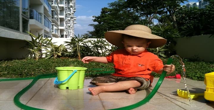 - Evita el uso de la manguera. Jugar con ella puede ser muy divertido pero es un despilfarro. Muéstrales a tus hijos que tú también puedes no usarla regando las plantas con una regadera y lavando el auto con una cubeta.