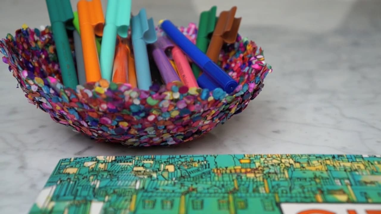 ¡Vamos a crear este divertido bowl de confetti siguiendo unos facilísimos pasos! Una linda decoración para el cuarto de tu nena que le encantará hacer juntas.