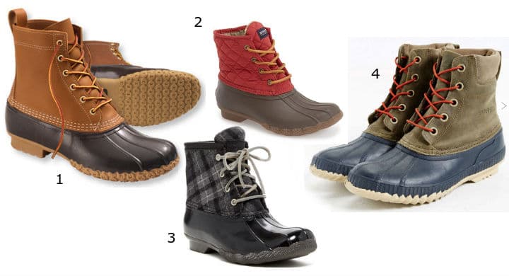 Las clásicas Duck Boots (80 dólares en adelante. Estos son los estilos y marcas más populares y de mejor calidad)