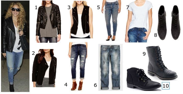 Shakira luce una chaqueta de cuero, pero el look se puede hacer con un estilo similar de jean, de tela liviana o de cuero verano. También se puede optar por una versión ‘chaleco’, ideal para esos lugares donde el calor todavía agobia.
