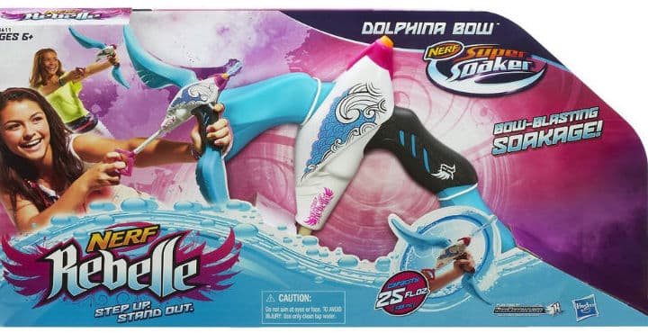 Juguete para exteriores (outdoor play): Ideal para los días de calor, Nerf Rebelle Dolphina Bow (Hasbro, Inc.) es una especie de arco que lanza un chorro de agua. Recomendado para niños y niñas de 6 años en adelante.