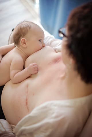 La imagen muestra a esta mamá dándole de comer a su bebé con el único seno que tiene, ya que el otro fue removido durante su tratamiento contra el cáncer.
